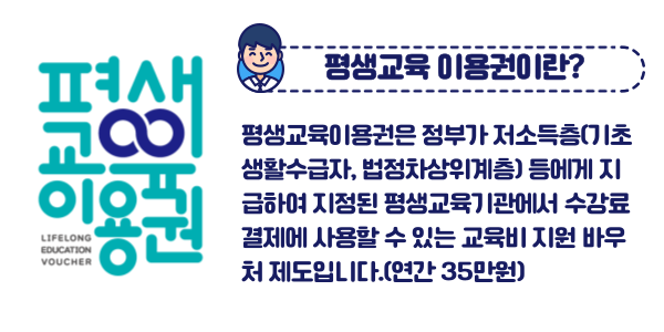 - 대상자 : 평생교육이용권 이용자로 선정된 학습자 본인(성인)